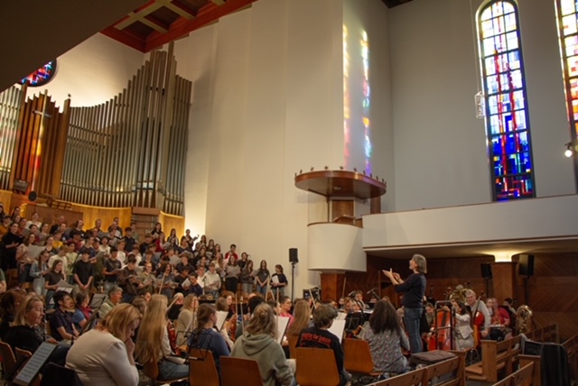 Am vergangenen Donnerstag fand der Kulturtag der Klassen mit Schwerpunktfach Musik und Bildnerisches Gestalten der Kantonsschule Olten statt. Die Klassen der ersten zwei Jahrgänge fuhren in die Westschweiz. Im ehemaligen Benediktinerkloster von Romainmôtier sangen und zeichneten sie und kosteten dabei die wunderbare Akustik der tausendjährigen Kirche aus. Am Mittag genossen sie ein leckeres Essen im Restaurant im ehemaligen Priorhaus, in dem sie Zeit hatten, sich gegenseitig auszutauschen. Ausklingen liessen sie den Nachmittag mit einem Tanz in der Kirche. Die Gymnasiumsklassen des dritten und vierten Jahres besuchten das Schaulager in Basel. Dort tauchten sie in das Werk Bass (2024) des britischen Künstlers und Filmemachers Steve McQueen ein. Die Installation, die aus Licht und Musik besteht, will die transatlantische Überfahrt der schwarzen Sklaven darstellen und in den Besucherinnen und Besuchern Gefühle auslösen. So liessen die Schülerinnen und Schüler denn auch die sich wechselnden Farben und Klänge auf sich wirken. Bei der darauffolgenden Diskussion wurde den Anwesenden bewusst, wie unterschiedlich sie die Farben und Klänge wahrgenommen haben. Als die Gruppe nach ihrem Aufenthalt in den Räumen der Ausstellung wieder nach draussen ging, war es ein kleiner Schock. Das Tageslicht schien zu grell, und der Bass vibrierte im Tram noch lange nach.